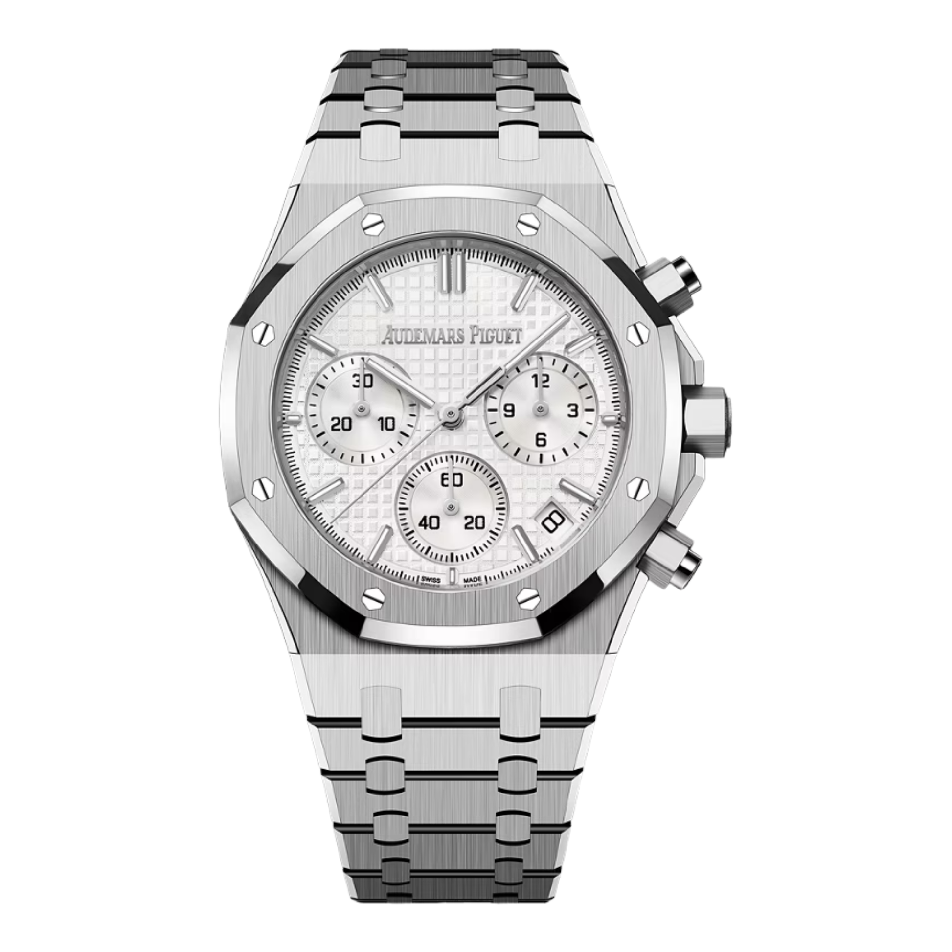 PRE-OWNED AUDEMARS PIGUET ROYAL OAK WITH CHRONOGRAPH, SILVER-TONED DIAL AND STEEL CASE/BRACELET