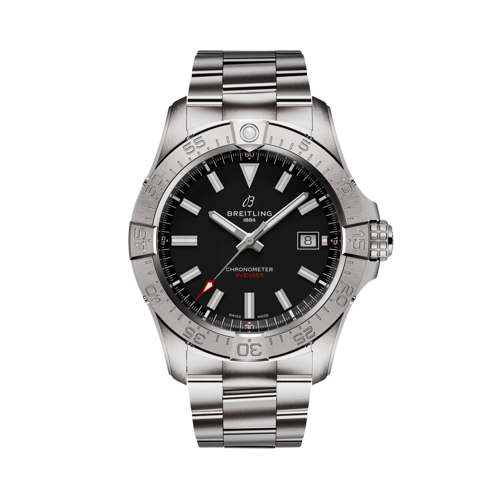 PRE-OWNED BREITLING AVENGER WITH BLACK DIAL AND STEEL CASE/BRACELET