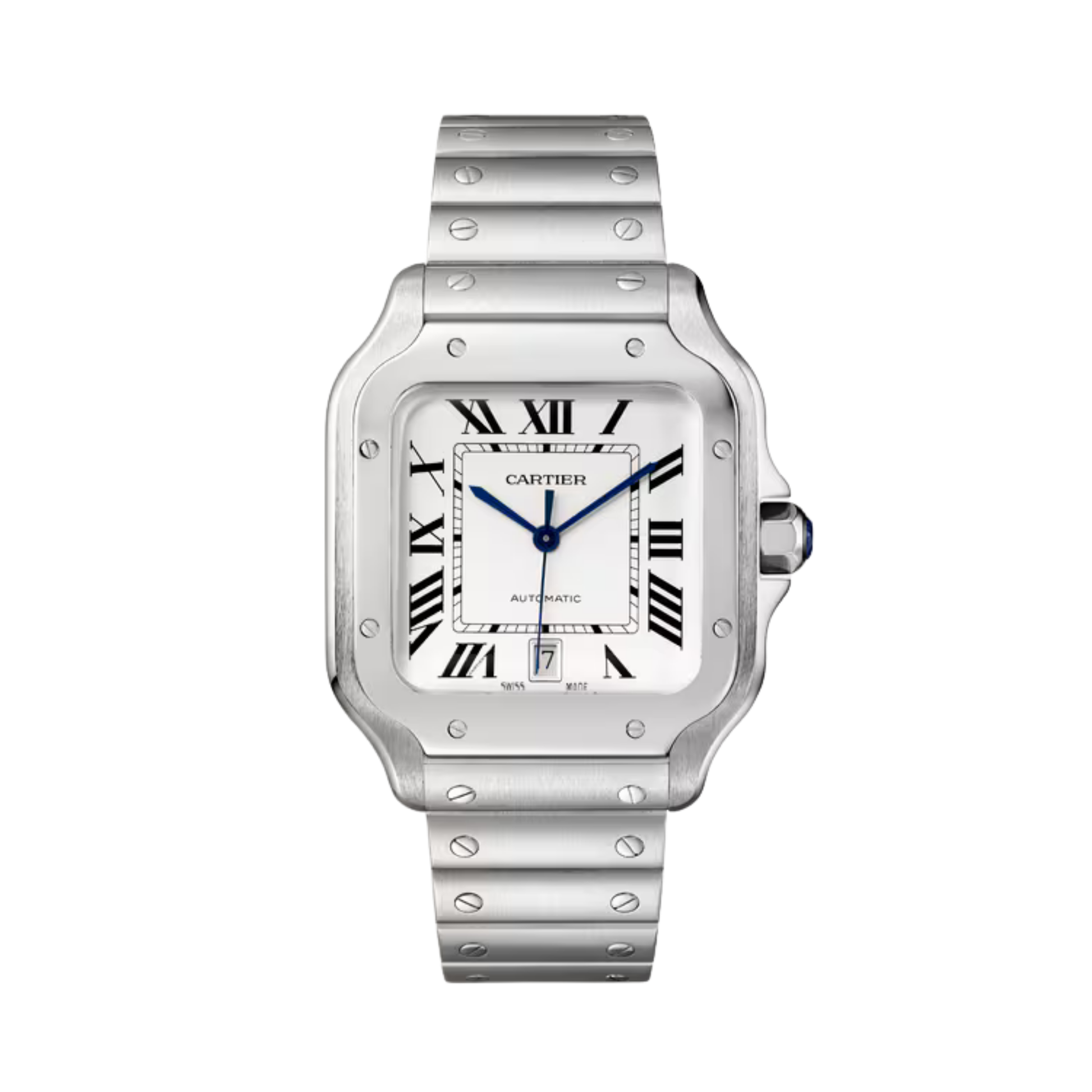 PRE-OWNED CARTIER SANTOS 39.8MM WITH SILVERED OPALINE DIAL AND STEEL CASE/BRACELET
