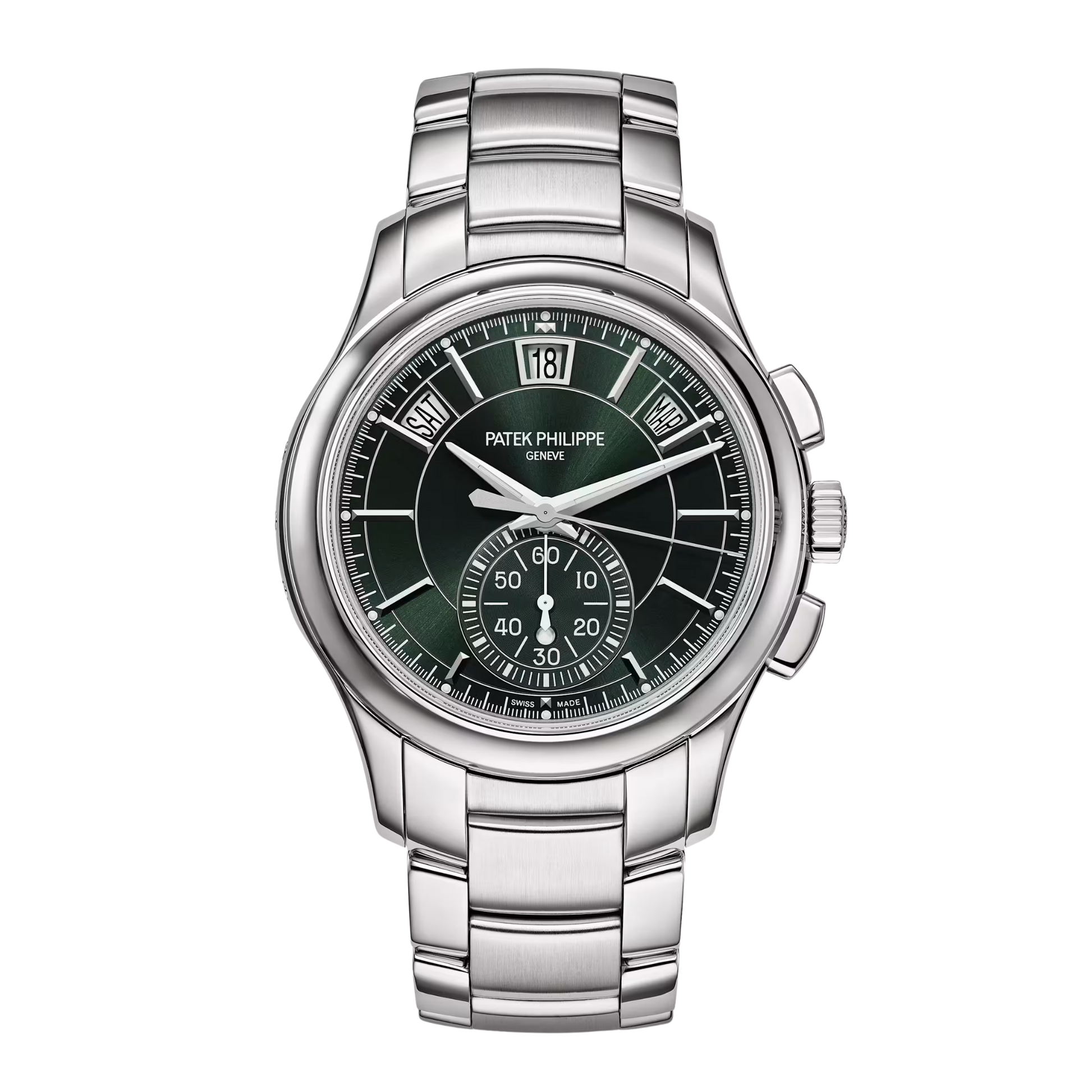 PRE-OWNED PATEK PHILIPPED FLYBACK CHRONOGRAPH WITH ANNUAL CALENDAR, OLIVE GREEN DIAL, STEEL CASE AND BRACELET