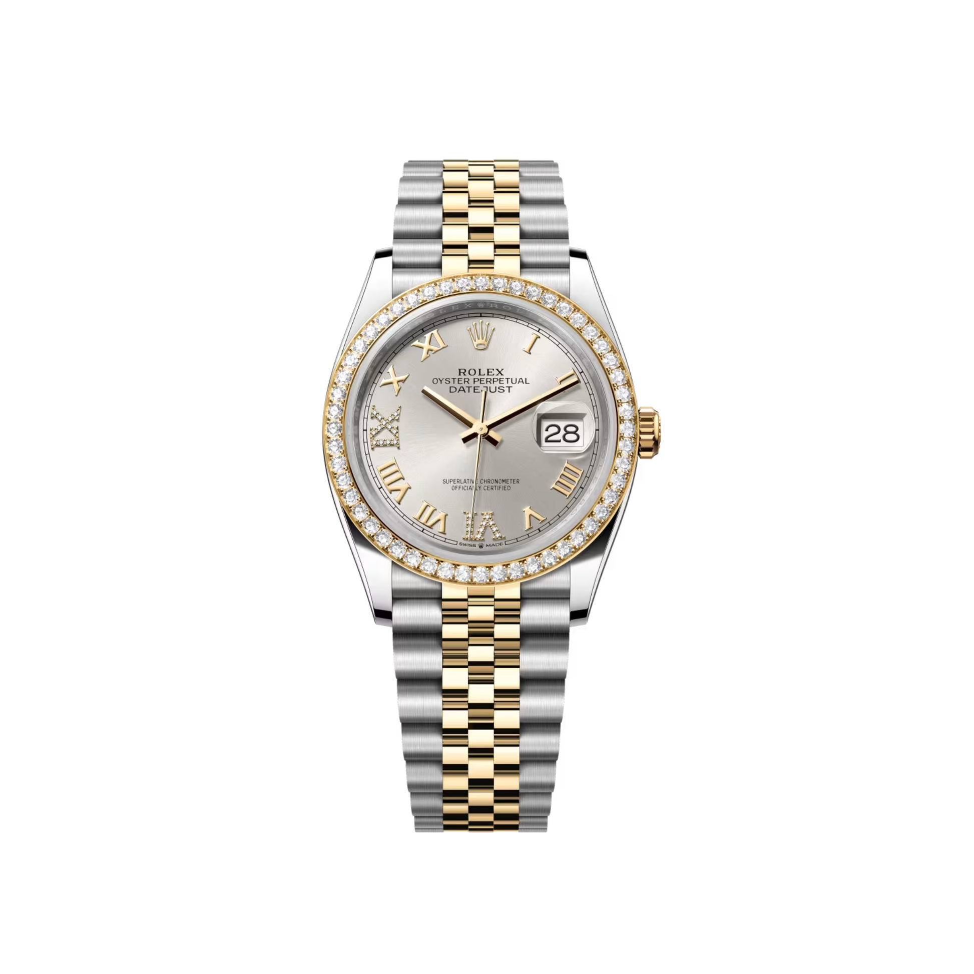 - Silver Roman Dial with Diamond Markers (6 and 9)
