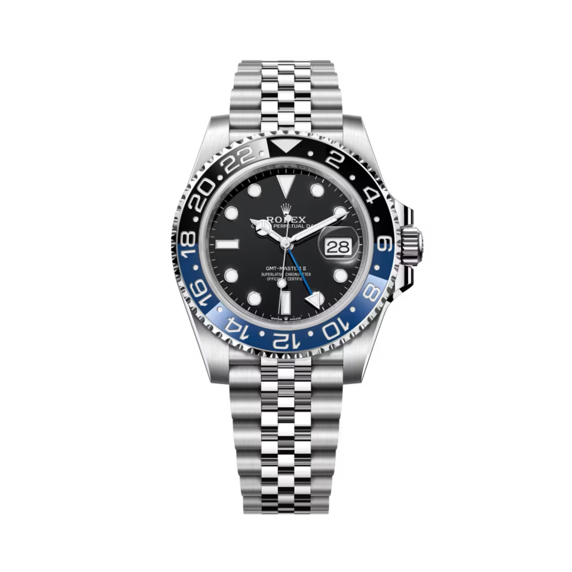 PRE-OWNED ROLEX GMT-MASTER II, BLACK DIAL, BLUE AND BLACK CERACHROM BEZEL, OYSTERSTEEL CASE AND JUBILEE BRACELET