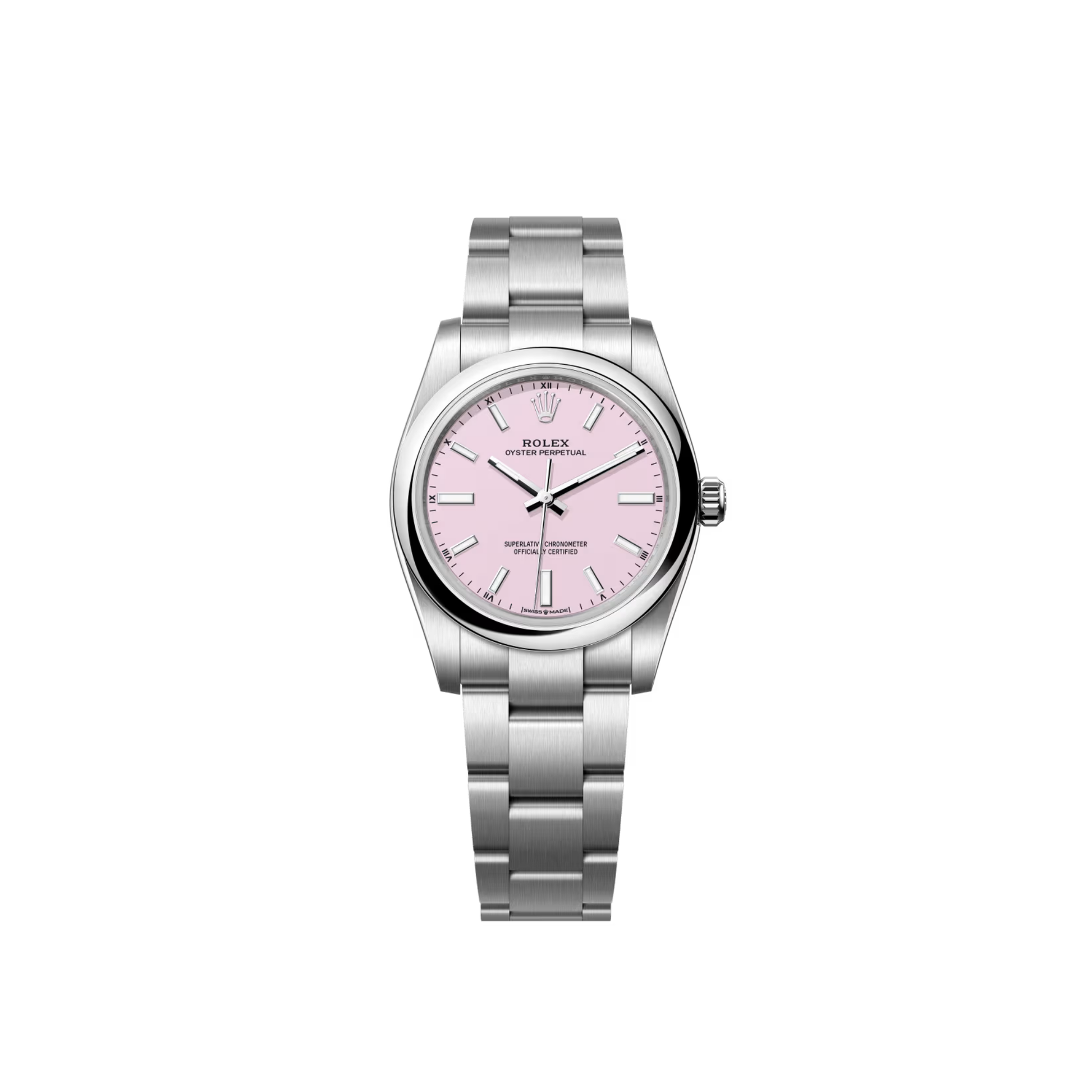PRE-OWNED ROLEX OYSTER PERPETUAL WITH NO DATE WINDOW, PINK DIAL, AND OYSTERSTEEL CASE/BRACELET